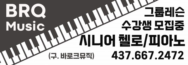 BRQ Music(구 바로크 뮤직스쿨) 작성자 정보 관리자 작성 작성일 2023.11.01 12:29 컨텐츠 정보 922 조회 목록 본문 BRQ 뮤직, 그룹레슨 수강생 모집 중. 시니어 첼로 / 피아노. ▶437)667-2472 관련자료 링크 http://www.brqmusicschool.ca/ 2184 회 연결 이전 McMaster University Life Science 졸업, 온타리 작성일 2024.01.26 10:04 다음 SK 히팅 & 쿨링 작성일 2023.10.06 14:19 댓글 0 등록된 댓글이 없습니다. 로그인한 회원만 댓글 등록이 가능합니다. 목록