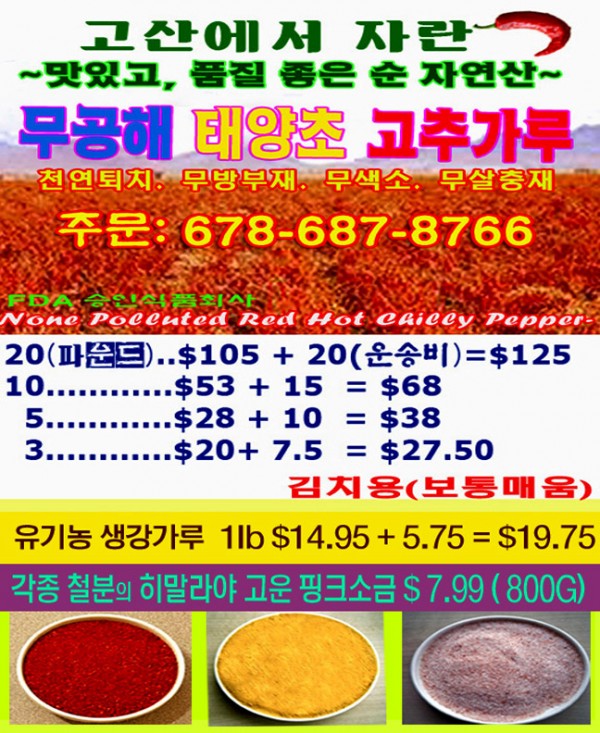 1400m 멕시코 고산에서 자란, 맛있고 건강에 좋은 무공해 태양초 고추가루! 작성자 정보 riverflow 작성 작성일 2025.07.27 05:18 컨텐츠 정보 437 조회 목록 본문 1400m 멕시코 고산에서 자란, 맛있고 건강에 좋은 무공해 태양초 고추가루! 관련자료 이전 RM 캐비넷 & 디자인 작성일 2025.08.05 23:49 다음 담배 해외배송쇼핑몰 [타바코]입니다. 작성일 2025.05.20 16:21 댓글 0 등록된 댓글이 없습니다. 로그인한 회원만 댓글 등록이 가능합니다. 목록